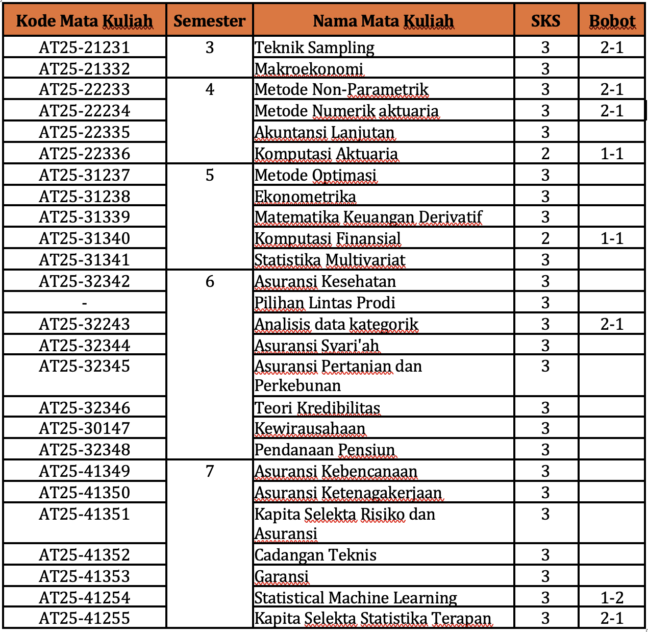| AT3116 | Matematika Aktuaria Lanjutan | 3 |