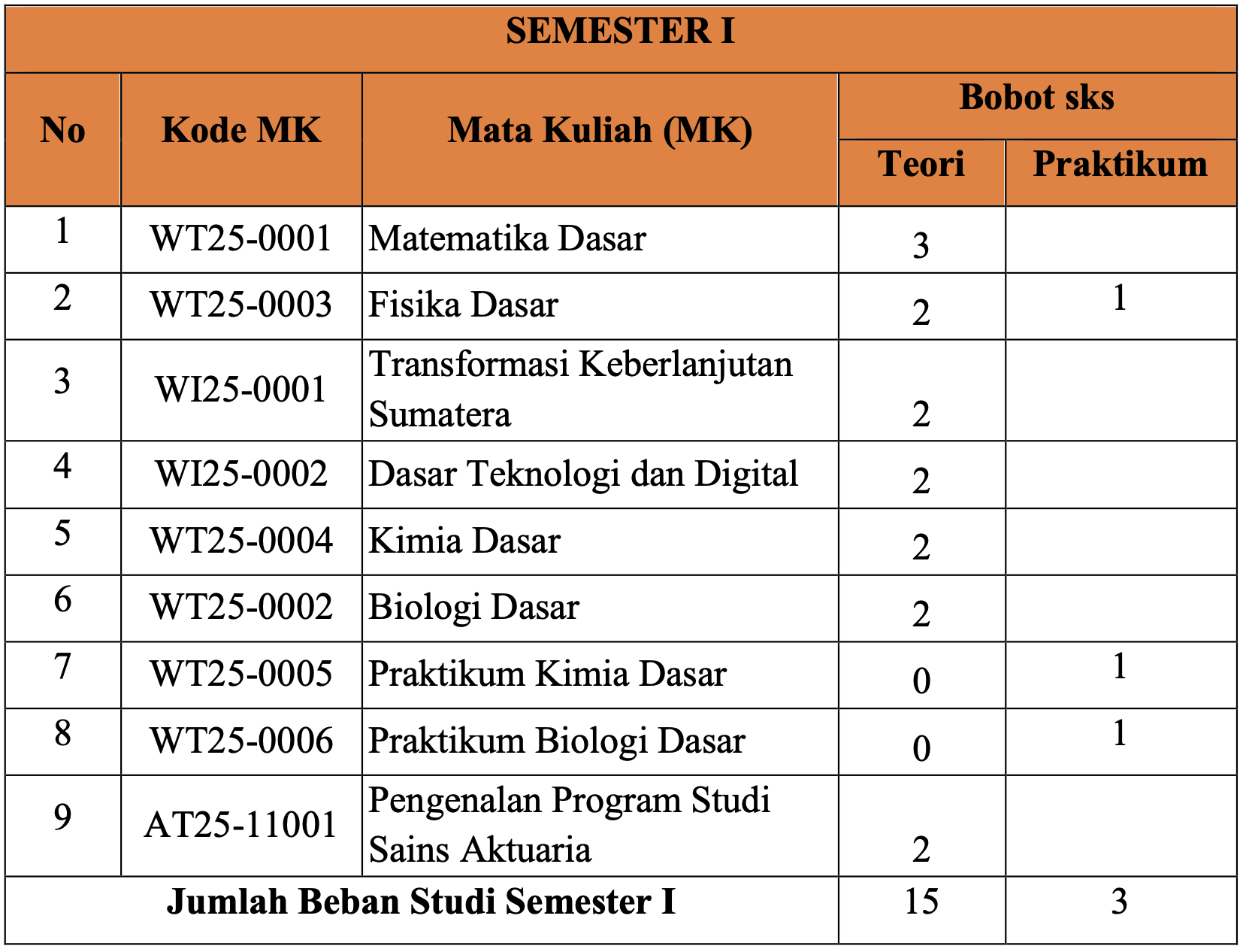 | Jumlah Beban Studi Semester I | 18 | |