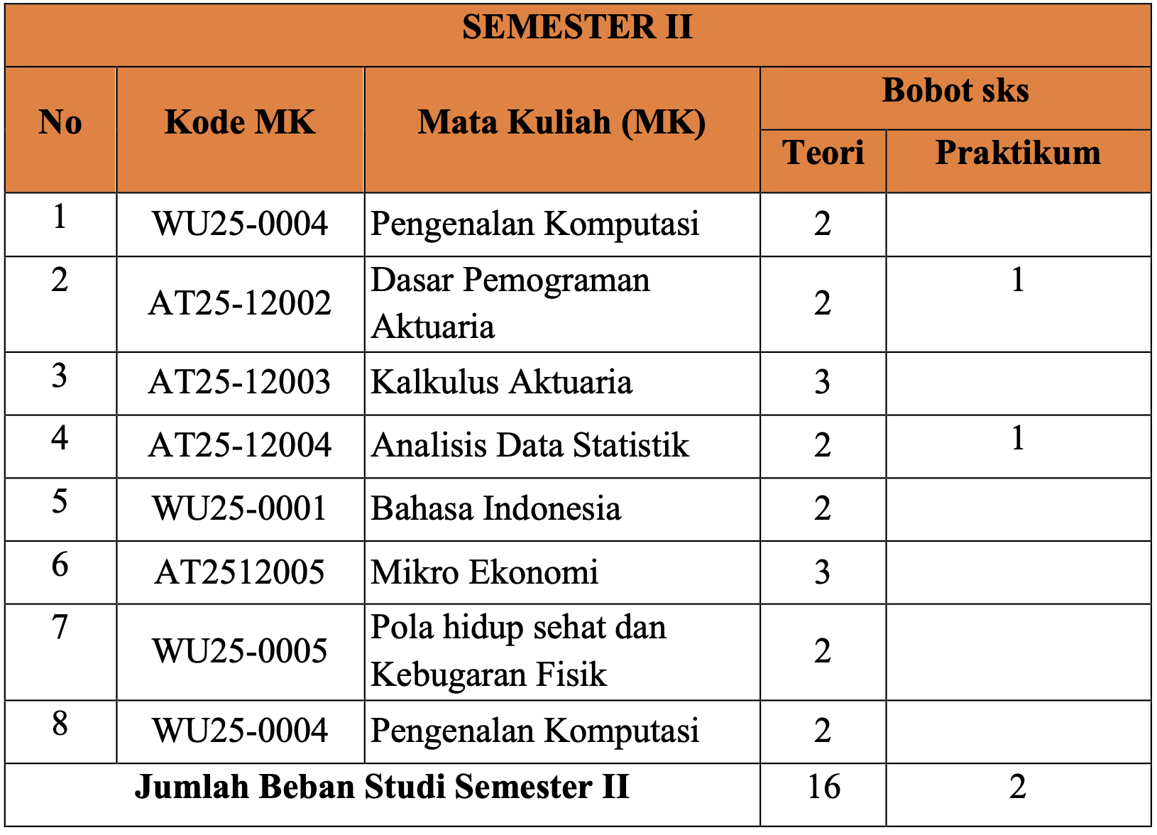 | AT1201 | Dasar Pemograman Aktuaria | 2 |