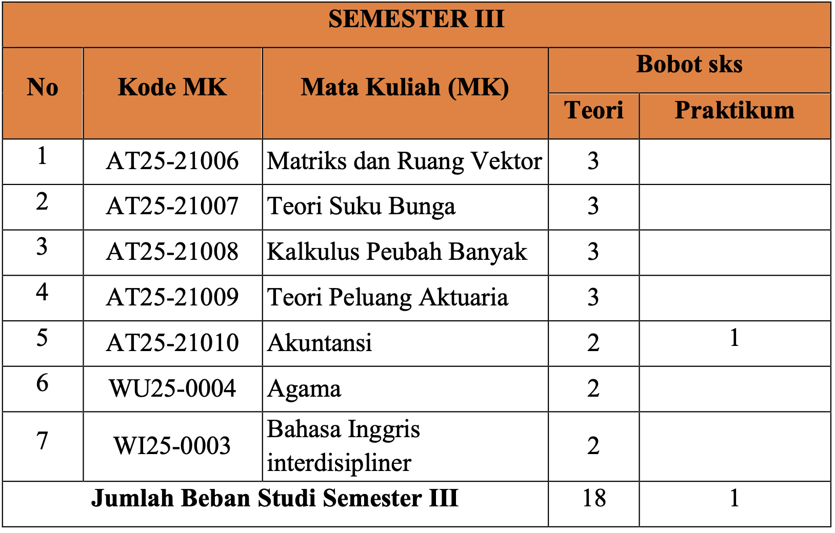 | Jumlah Beban Studi Semester III | 18 | |