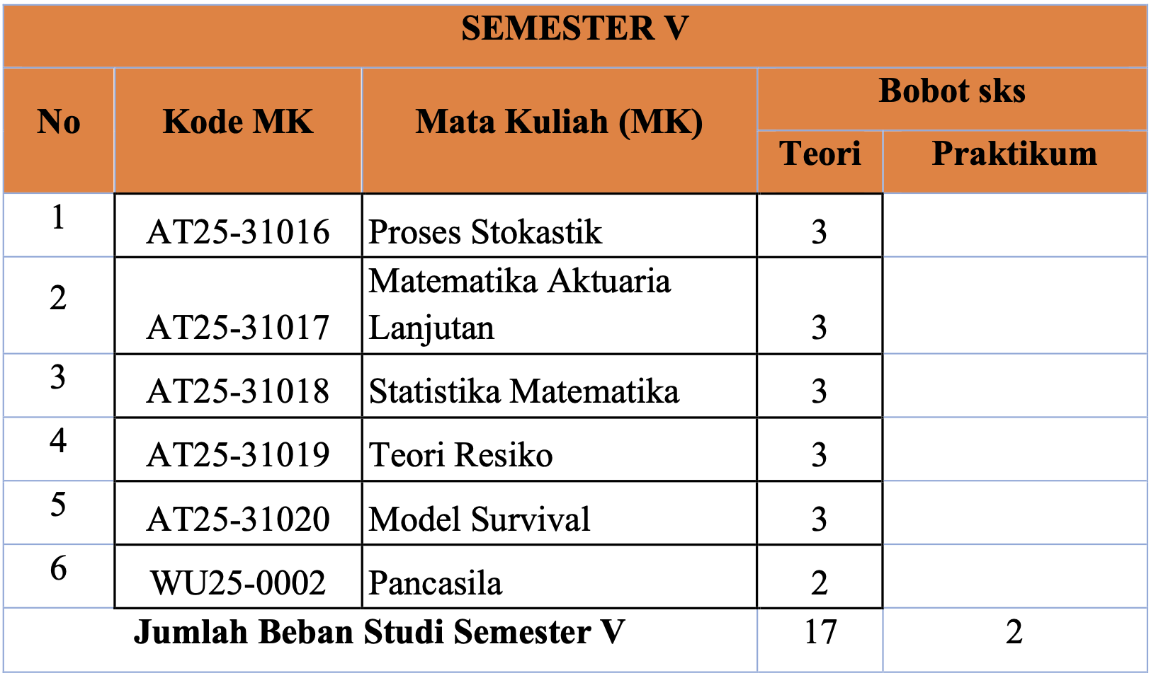 | AT2221 | Teori Peluang Aktuaria | 3 |