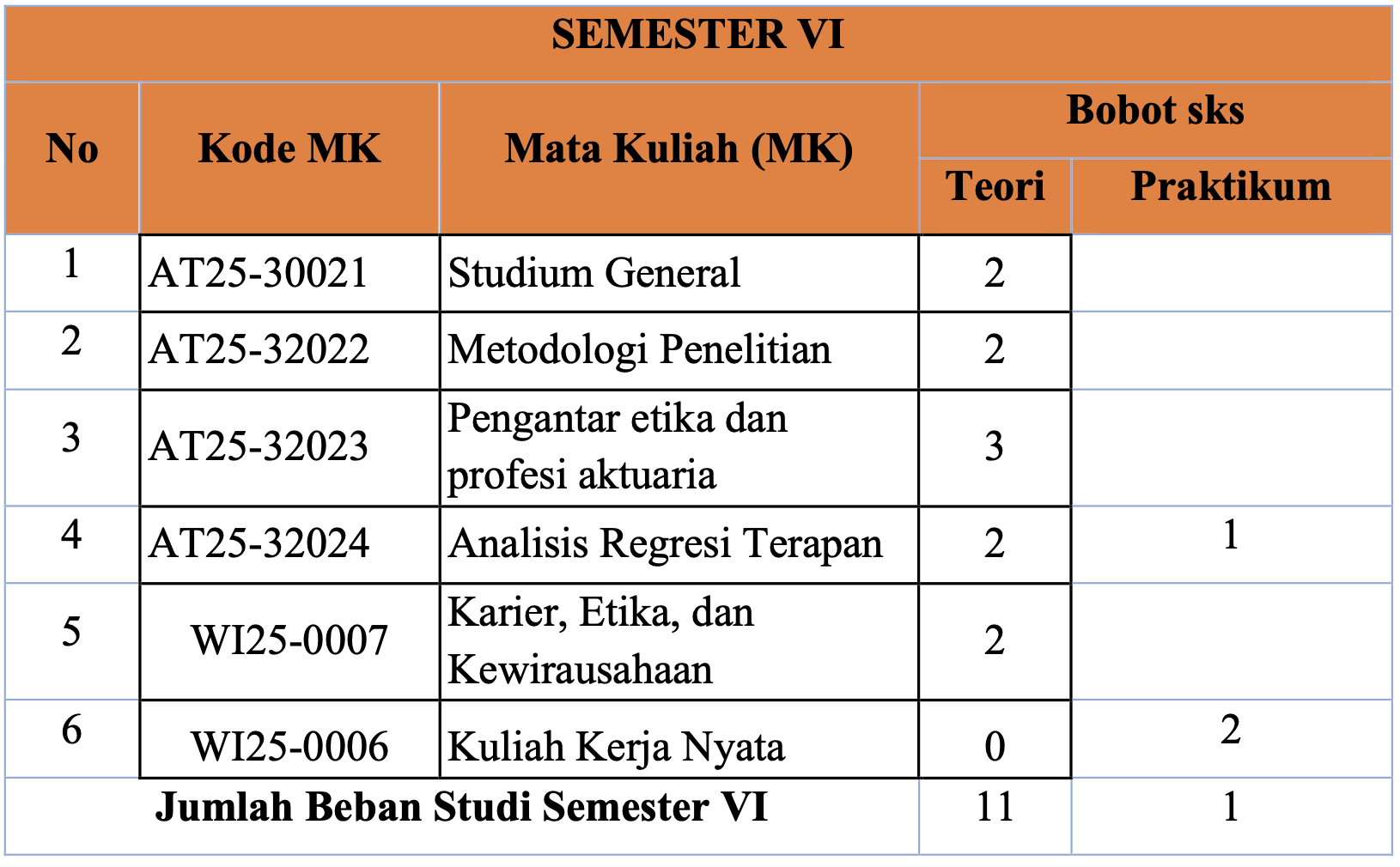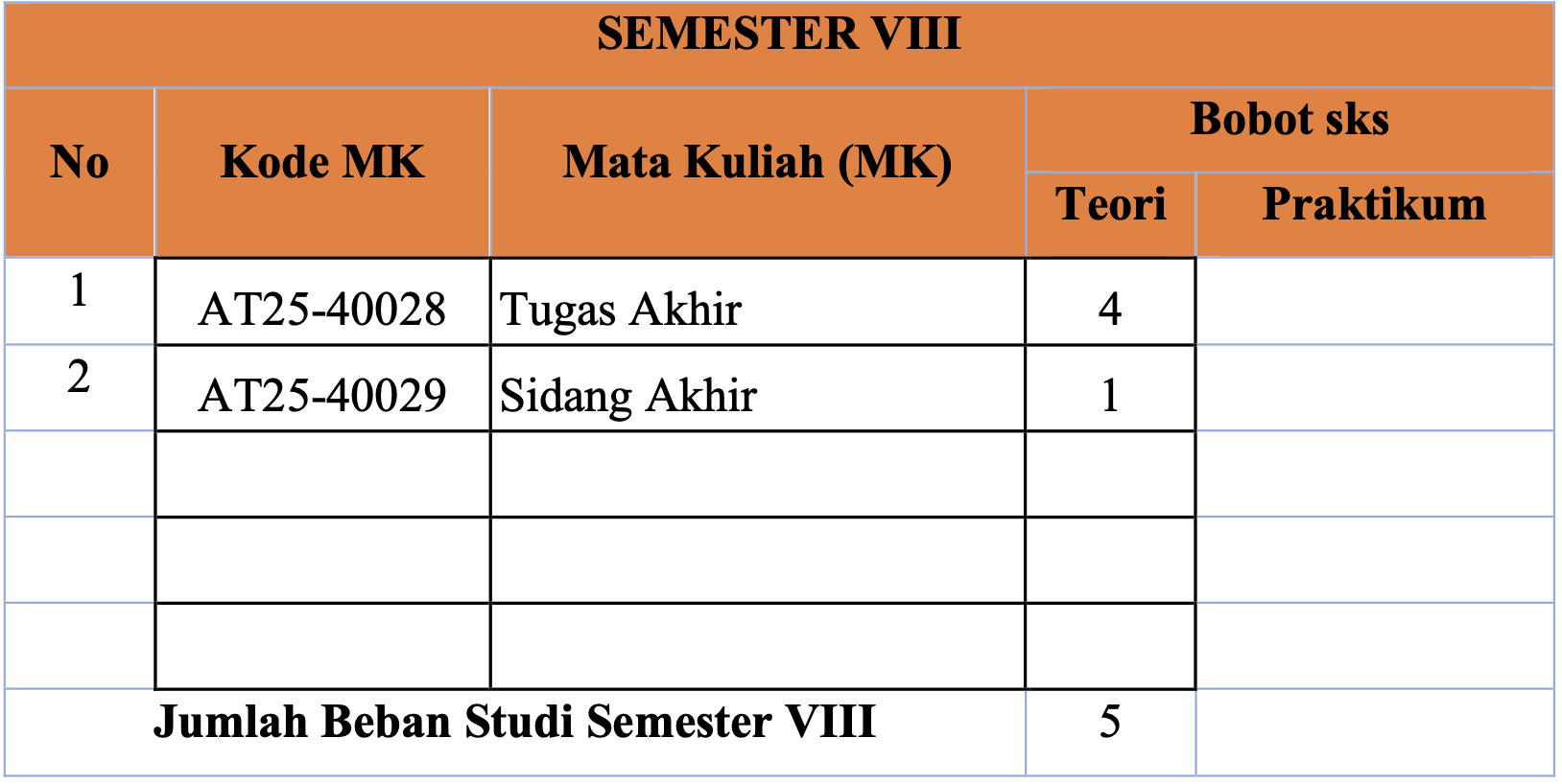 | Jumlah Beban Studi Semester VIII | 11 | |