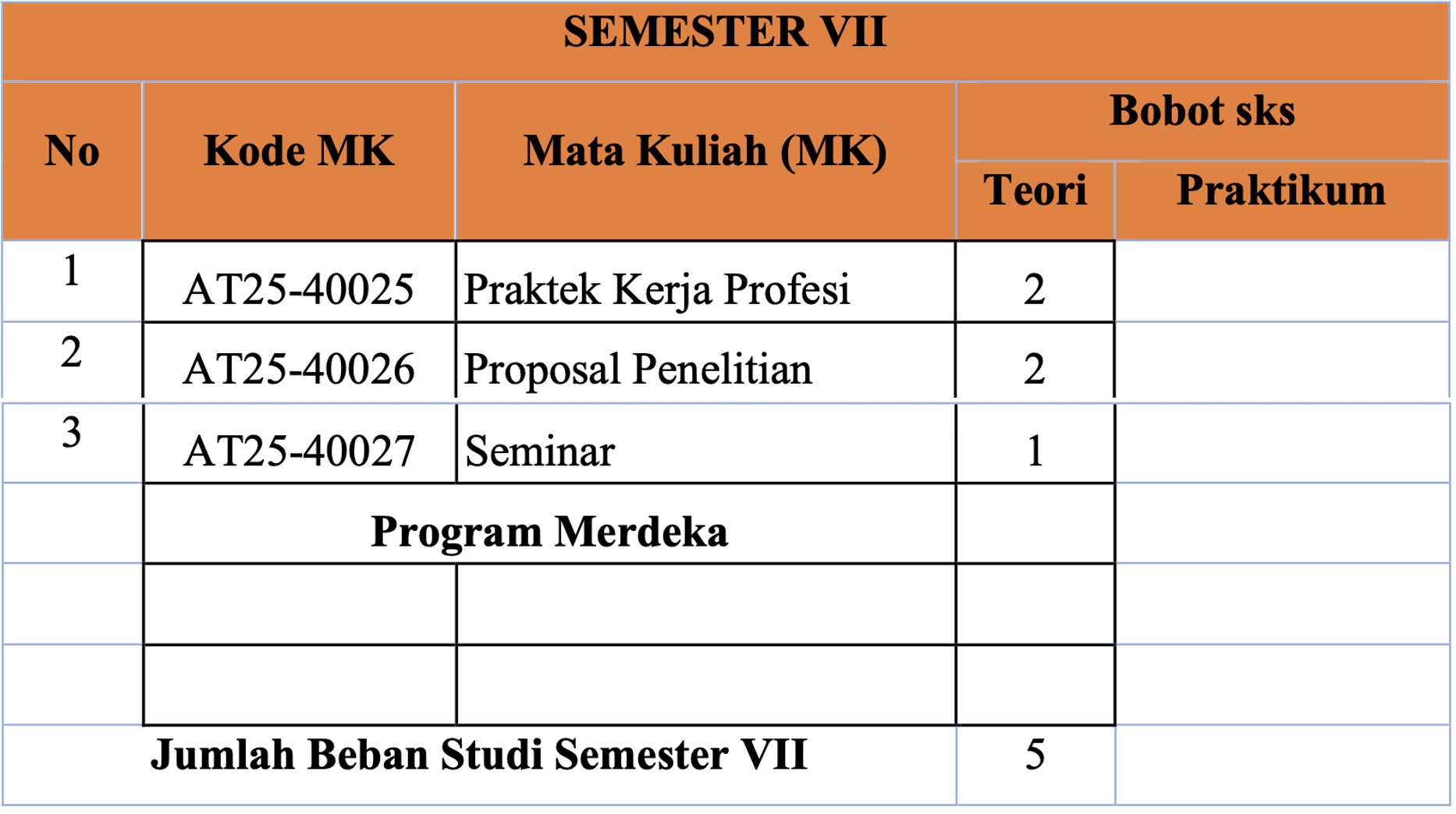 | Jumlah Beban Studi Semester VII | 20 | |